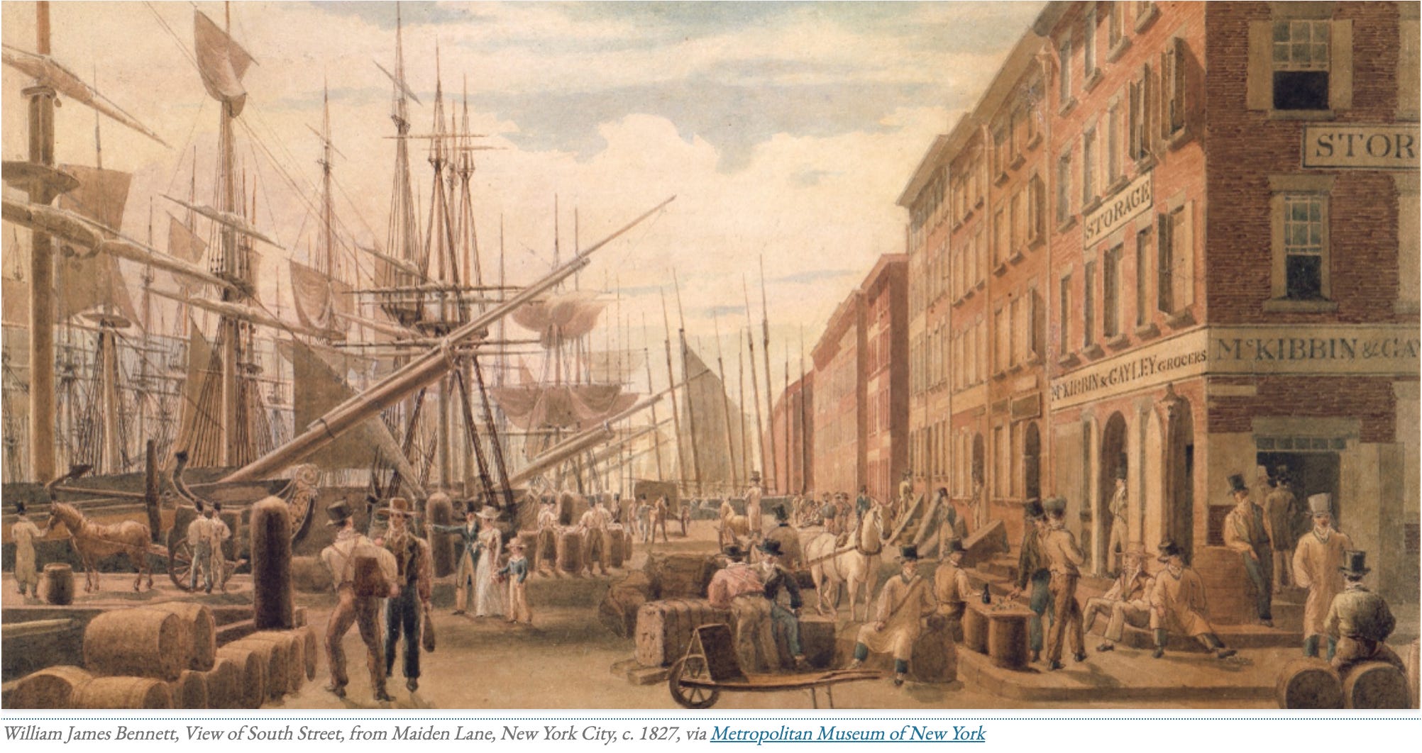 Not all Americans, though, were entirely supportive of what American society was becoming. In an 1800 address celebrating the 23rd anniversary of American independence (a curious dating of independence!), Columbia College Professor Samuel Mitchill, warned his fellow citizens about the “lust after property” that leads to men acquiring and developing an “incalculable number of artificial or acquired wants” that in turn become the “ruling passion of the mind” and expressed as a “most sordid avarice.” Mitchill also lamented the fact that “the voice of the people and their government is loud and unanimous for commerce.” The “inclinations and habits” of the American people seemed, according to Mitchill, “adapted to trade and traffic.” In fact, “From one end of the country to the other, the universal roar is,” the Columbia Professor scoffed, “Commerce! Commerce! at all events, Commerce!” Mitchill’s classical republican criticism of wealth and commerce was genuine but outdated. Going forward, very few Americans would share his concern. In fact, his reservations about America’s burgeoning capitalist economy only demonstrates its reality and power.