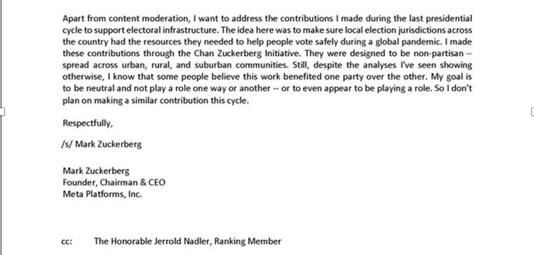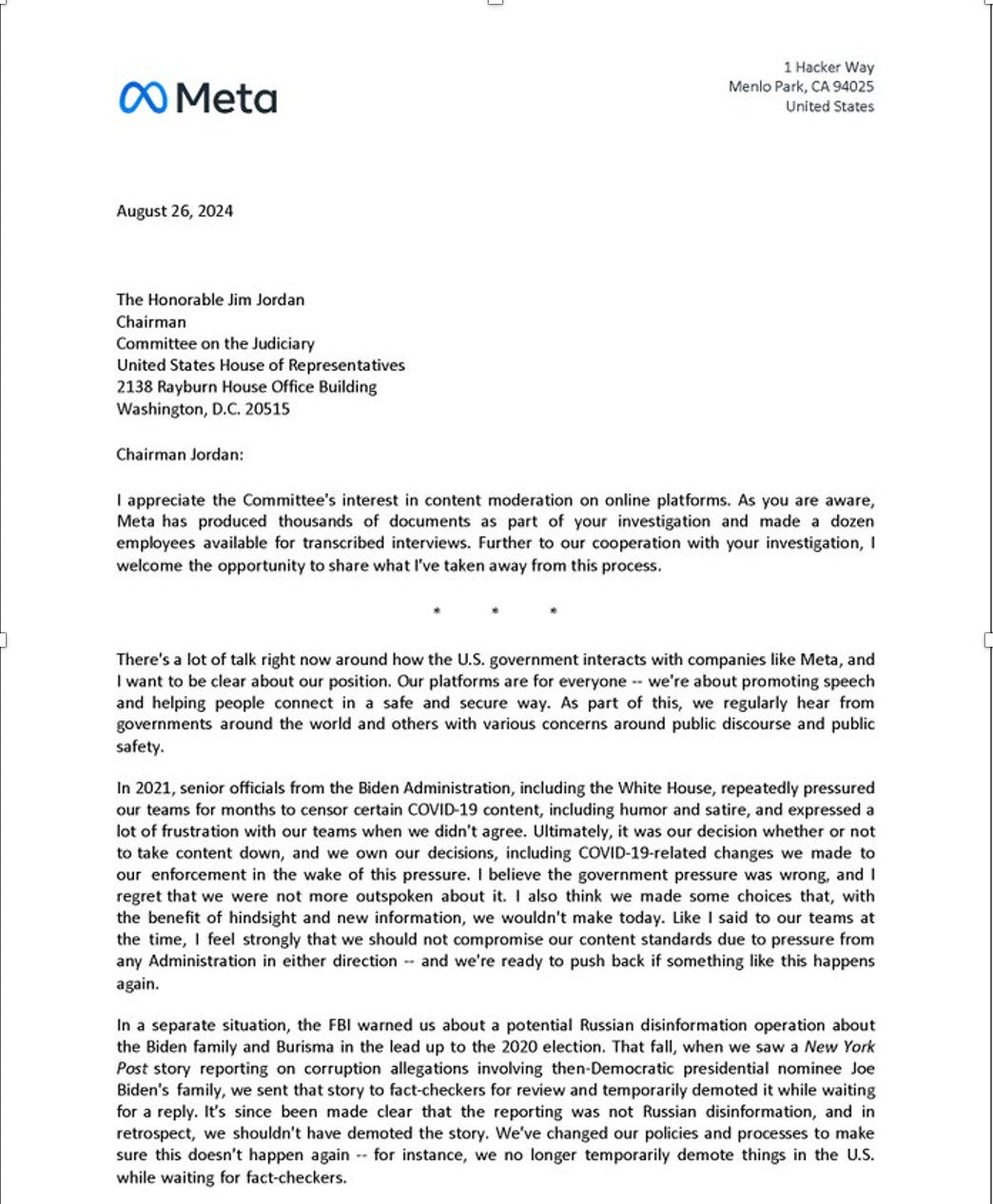 AND NOW WE KNOW THE TRUTH! This letter from Mark Zuckerberg to Jim Jordan reveals certain important things: 1) the government (i.e., the Biden-Harris administration) pressured social media outlets to “censor” and thus propagandize; 2) Facebook did in fact “censor” ordinary Americans; 3) Facebook, at the behest of the federal government killed the Hunter Biden laptop story.