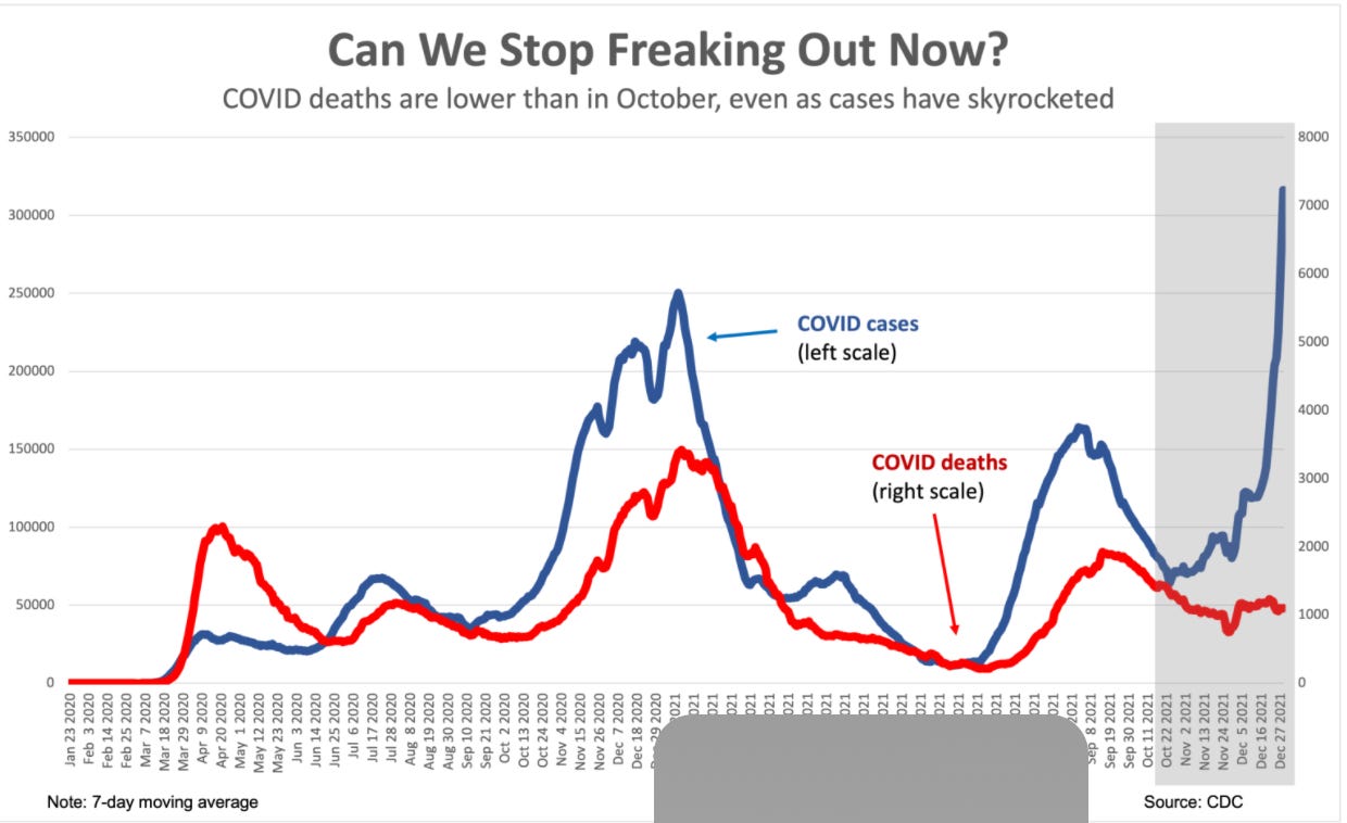DOES THIS ALSO MEAN THAT THE PANDEMIC OF THE VACCINATED IS OVER AS WELL? Cases up, deaths down.