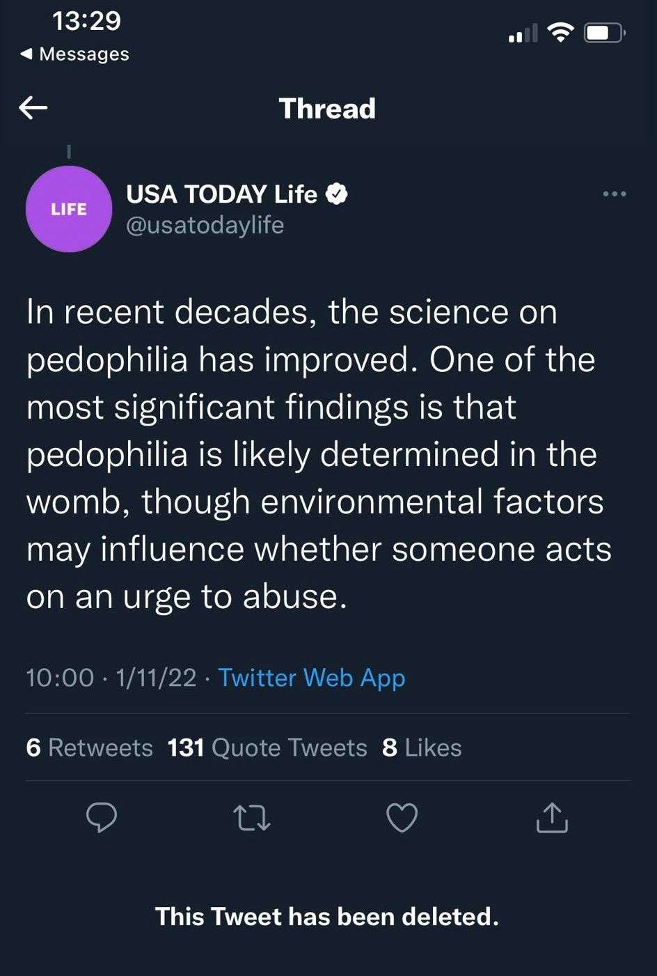 DECLINE AND FALL OF LATE STAGE AMERICA (call me old-fashioned): USA Today: Pedophilia Is Merely ‘Inappropriate,’ ‘Among The Most Misunderstood’ Conditions In America.