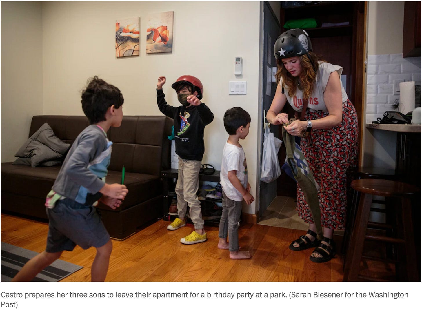 PROGRESSIVE PARENTING IN THE AGE OF CORONAVIRUS: “Parenting a child under 12 in the age of delta: ‘It’s like a fire alarm every day’. Routine outings become tricky decisions for the youngest Americans, who are still ineligible for coronavirus vaccines.” I do not want to live in this society. Surely this is a form of bad parenting if not child abuse. Just look at these photos closely. None of the children in either photograph are wearing knee pads, only one child is wearing a mask in the house, and two of the three children are not wearing their crash helmets in the house. What kind of parent allows this to happen? There should be a law mandating that children wear helmuts at all times. What kind of parent doesn’t protect their children?