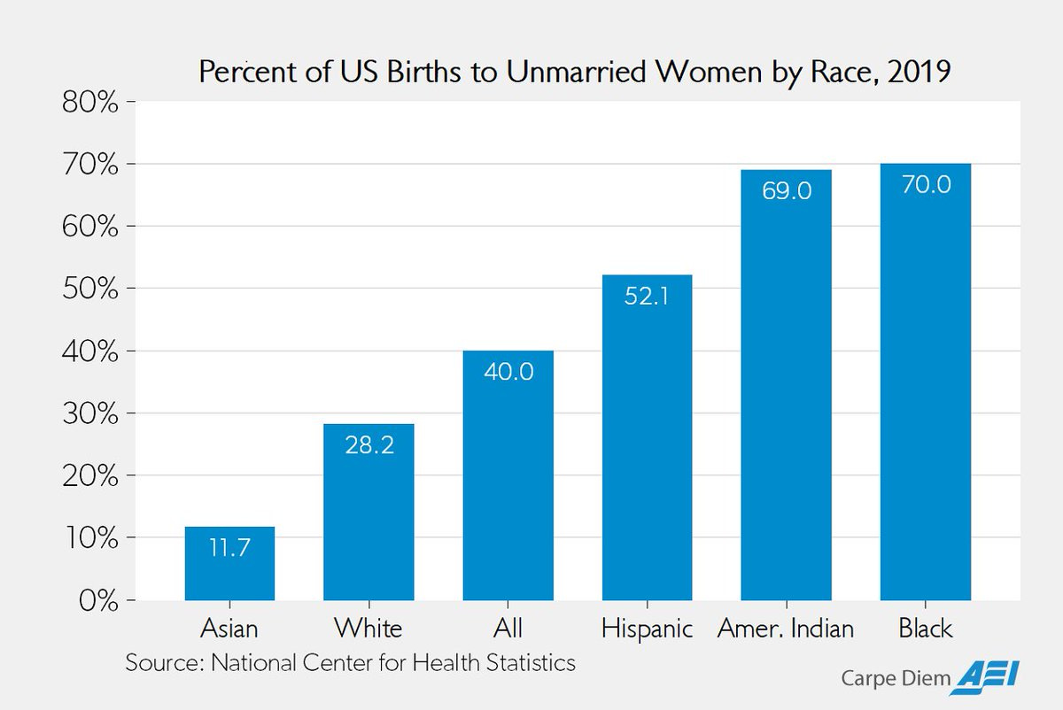 This graph, every single bar of it, is representative of the moral crisis of our age. What can’t go on forever, won’t. A free, just, good, and beautiful society cannot sustain these levels of fatherlessness. America, across the board, is suffering from a deficit of fathers. If you see a little boy or girl without a father, be good to them.
