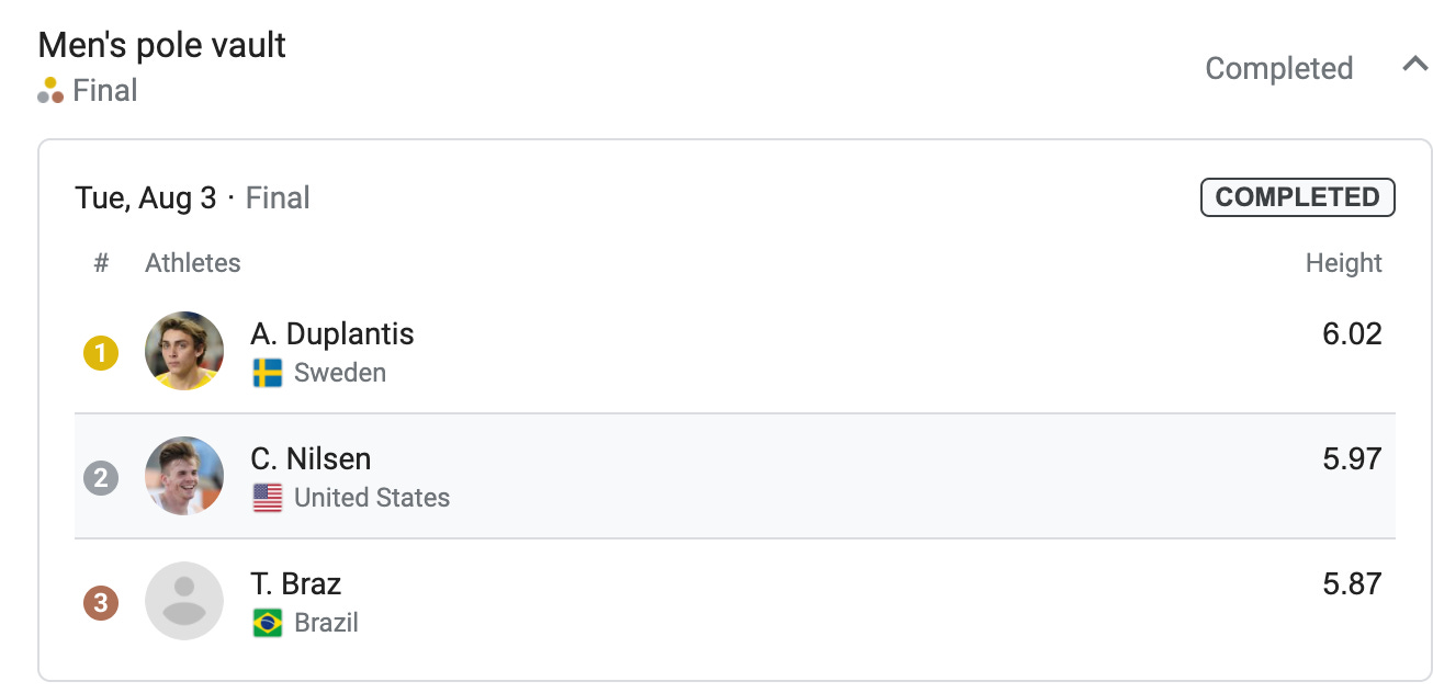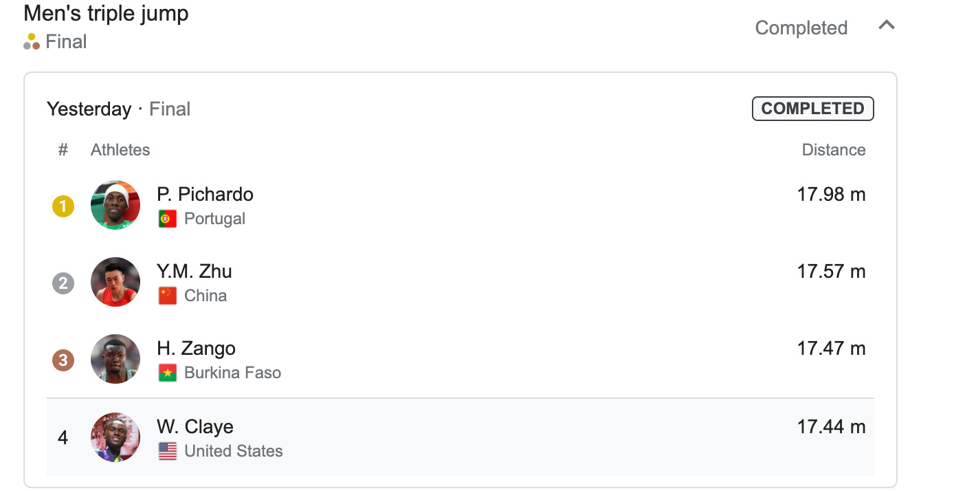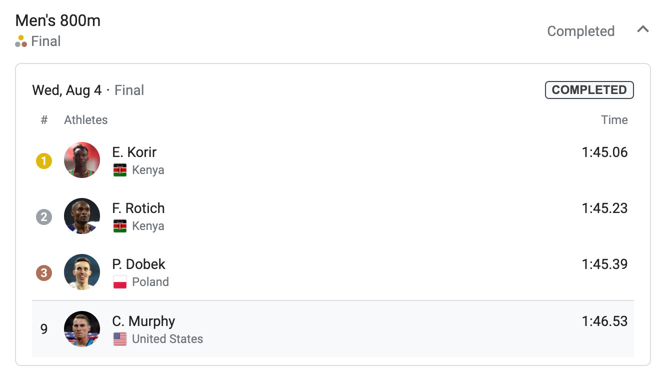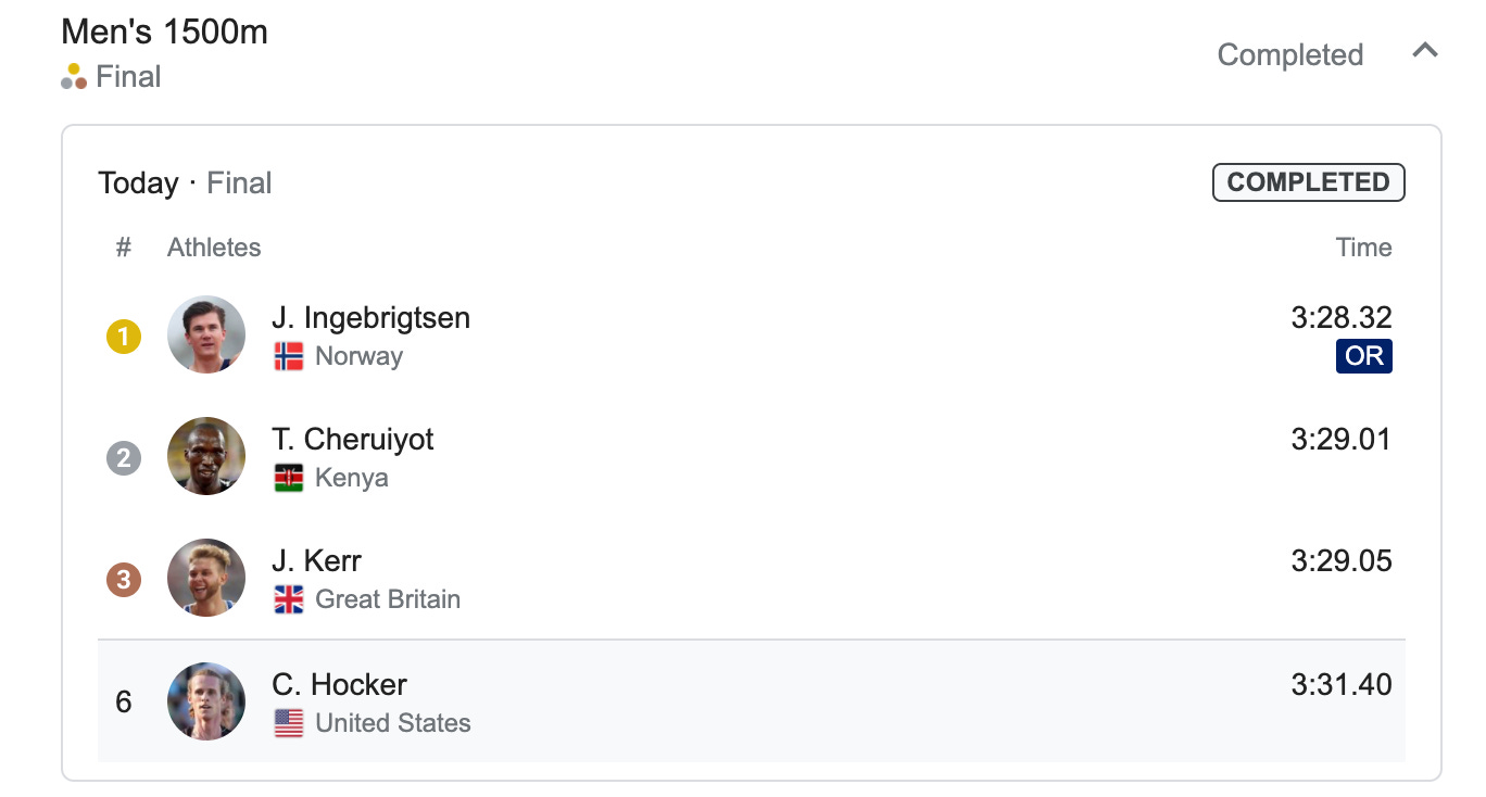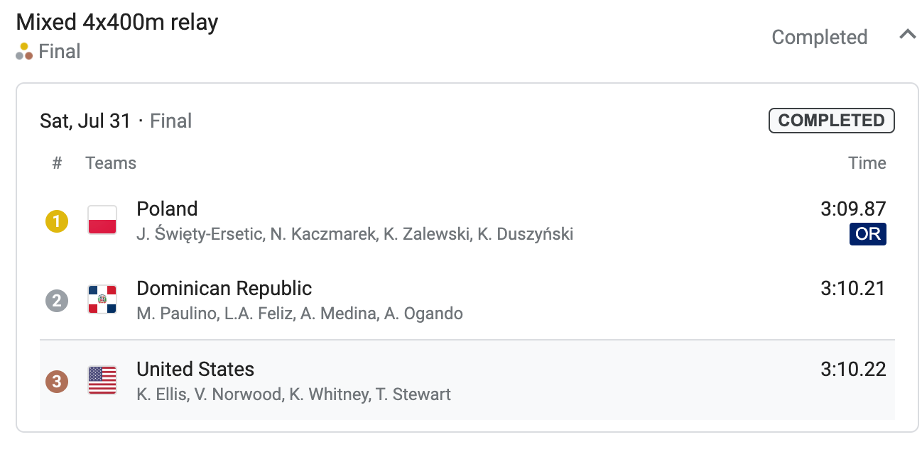 The U.S. men did win gold medals in track and field. They won the gold medals in the 4 x 400 relay and shot put. I don't know why the 4 x 400 mixed (men and women) relay is listed here but not the 4 x 400 men's relay. By my count 29 countries won medals in the men's track and field events. By my count the U.S. men's team won 10 medals. The next country was Canada with 5. I excluded the two race walk events and my count may be off by a little. I'd say what's wrong with this picture is that Mr. Doom and Gloom cherry picked things to fit the story he wanted to tell. The U.S. men's team didn't do as well as they usually do, but they still won the overall medal count. It could simply be that the rest of the world is starting to catch up with the U.S. men in track and field, not that the U.S. men's team in declining from within. In the 1500, for example, Cole Hocker from the U.S. broke the previous Olympic record for the 1500 meters and yet finished sixth because it was the fastest 1500 meters in Olympic history. Hocker is only twenty. Two years ago he was ranked as the 18th fastest high school miler -1500 meter runner in the U.S. In two years time he has moved up to having the all time sixth fastest Olympic time. He should have many good years ahead of him. Of course, Mr. Doom and Gloom didn't note this. He simply noted that Hocker finished 6th because it fits the viewpoint he wants to share. The U.S. women's track and field team did well. They won around 15 medals, five of them gold.